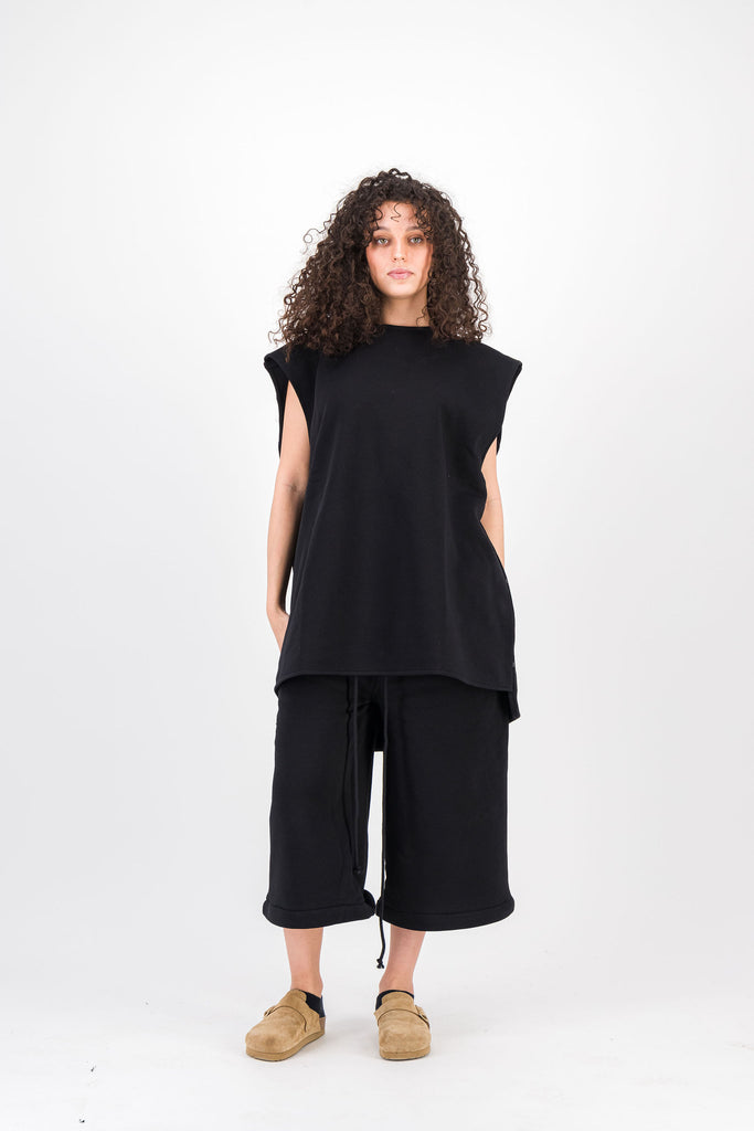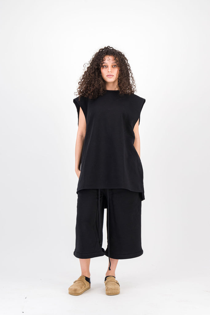 Designed in a long and classic loose fit, this DREAMAIRE Sleeveless Tank Top features a round collar and a ribbed leather trim in the back.